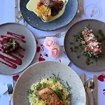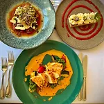 A Lazensky Hotel Pyramida vegetáriánus reggelit szolgál fel. A szálláson a Restaurace étterem található.